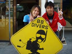 今日も沖縄は晴天☆ちょっぴり波はあるものの真栄田岬もOPEN☆そんなダイビング日和の日に遊びに来てくれたのは・・・ビビリ〜新婚さん★ゆうやさん&さきこさんでぇす♪笑 2人は閉所・高所恐怖症がありながらもダイビングに挑戦!!さきこちゃんはノリノリで登場(^^) 一方ゆうやさんは泳げないからダイビングは・・・笑 でも開催できちゃったので行っちゃいます!!笑 陸上・水面の練習では2人とも怖い(><)って言いながらもだんだん慣れてきた様子☆ではいざ水中へ!!ってなったらちょっぴりドキドキしてきたのかさきこさん呼吸が荒く・・・でももう1度練習をしたら少し余裕が出てきたみたいでスムーズに水中へ行くことができました♪水中ではクマノミのお家イソギンチャクやヒトデなど発見したけどビビリなゆうやさんは触れるのを拒み・・・でも触ってもらいました(^0^)笑 不思議な感触だったでしょ??だんだん慣れてきたようなのでBBスタッフよりサプライズプレゼント!!Happy Happy Wedding♪これからもず〜っと仲良しで笑顔の素敵なお2人でいて下さいね(0^^0) そして帰りはお魚追い掛けながらふわふわゆっくり泳いで帰りました♪最初の緊張はどこへやら♪楽しんでもらえて良かったです☆今回は洞窟断念したけど次回は頑張ってチャレンジしてみてね♪また2人の笑顔に会えるのを楽しみにお待ちしてます(^^) |