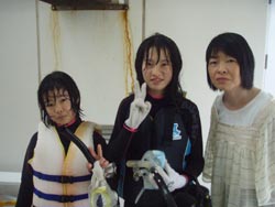 今日も沖縄は快晴☆海はちょっぴり落ち着いてきて真栄田岬で体験ダイビングへ行って来ましたぁ♪元気いっぱいの大学生☆ゆきちゃん&みほちゃん&さなみちゃん&まどかちゃんです(0^^0) みんな初めてのダイビングだったのでドキドキ★ワクワクしながらのスタート(^^) みほちゃんはワクワクの方が強かったみたいで早く行きたい様子♪水中でもキョロキョロ周りを見回してとっても余裕(^^) さなみちゃんもカメラを向けられるとにっこり笑顔でピースをするほどかなり余裕♪ ゆきちゃんはちょっぴり耳抜きに苦労していたけど上手に泳ぎまわってました☆ そして・・・ビビリなまどかちゃん!!水中に入ろうとしたら呼吸が出来ない(><)とトラブル発生?!ドキドキしちゃって呼吸の仕方を忘れちゃったんだね(><) でも自分でしっかり落ち着きを戻して水中ではにっこり笑ってくれました☆天気も最高に良かったので洞窟内はキラキラとっても蒼く輝いてました☆たっぷ〜り眺めて癒されてもらえたかな??そしてたくさんのお魚さんに囲まれながら泳いだりお魚にごはんをあげたり・・・陸上では絶対に無い景色がたくさん広がってたね(0^^0) また沖縄に来た時は遊びに来てね♪4人の元気な笑顔が見れるのを楽しみにお待ちしてま〜す(^^) |