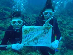しげちゃんです!今日新しくダイバーが誕生しました★沖縄のゲストハウスで偶然出遭った最高のバディ!!くーちゃんとはるちゃん♪初日からハイテンションでスキルもバンバンクリアーしてどんどん成長!!学科のほうも(?)スムーズ(?)にクリアーして迎えた最終日★砂辺でたくさん泳ぎまわり、ウミヘビにビビリ、ニモに癒され、ナマコでシモネタを繰り返し、お花畑で癒され♪ 2本目は場所を移動して、真栄田岬へ!今、沖縄で最も熱いダイビングポイント「青の洞窟」へ!!!貸切状態の洞窟を満喫し、水面へ浮上して、水面の青さも楽しんできました!魚にエサをあげたり追いかけたり★そして迎えたOW合格の瞬間!!おめでとーーーーー★綺麗な海で最終日を迎えられて本当によかったね!ダイビングの世界はまだまだ奥も底も広いのでどんどん潜って楽しんでね!またお待ちしてます!あーーーーーっす♪ |