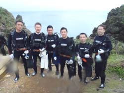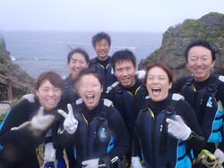 はいはーい!ども、りょーけんでっす。今日の午前中はスノーケルと体験ダイビングに行って来ました〜!今回のゲストは北海道から社員旅行でお越しのタダさん!ミヤさん!スギさん!よっしー!カメちゃん!の5名!!最初はスノーケルで青の洞窟をじっくりと見たあとダイビングで真栄田岬の海を遊びまわってきました!!今回みなさんからコメントをいただいているので掲載します!! |