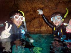 ども!今日は、真栄田岬でスノーケルに行ってきました〜♪♪一緒に行ったのは、北林さん一家の総勢7名です!始めは歩きで洞窟へ^0^波をかぶりにかぶって、スリリングな出だしでしたね(笑)洞窟の中から出発して、入口を水中から覗くと・・・、なんとゆ〜ことでしょう!青く輝いてるではないですか!!!しかーし、スノーケルでは水面から見る「青」がメイン♪移動して、じらしじらしながら、最後はバッチリ青い光が見えましたね!ちょうど空いていたので、洞窟の中で一発芸もやりました〜!いかがでしたか!?その後はエサをあげたり、色々と面白い写真が撮れたり(笑)こっちも笑わせてもらいました♪♪今度、また気が向いたら、ダイビングで一緒にもぐってみましょう!お待ちしてますよ〜〜!! |