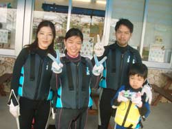 はいさ〜い、どーもせーやです!!今日一緒にダイビングで泳いでくれたのは、東京都からお越しの河合さん三人家族です!!河合さん家族はずっとみんなでダイビングしたかったみたいで今回遊びに来てくれました。光琉くんはまだ8歳で深くまで行けませんでしたが、上手に水中を泳いでました☆お父さん、お母さんは最初から上手に泳ぎ、いろいろな魚を見て最後にはクマノミを見ましたね!そんな三人からコメントをもらったので載せていきまーす! 正記さん「初めてで緊張しましたが、インストラクターの方が安心感を与えてくれる方で十分楽しめました。今度はさらに楽しめそうです。今日は本当に有難うございました。」 智恵さん「初めての体験ダイビングで不安もありましたが、ゆっくり丁寧に教えて頂き、とても素敵な時間を過ごすことができました。実際に海に潜ると、自分が水槽の中に入ったような漢字で魚をとても近くに感じ不思議な感じでした。シュノーケルとは違い迫力がありました。あっという間の楽しい時間をありがとうございました。」 光琉くん「色々な魚やイソギンチャクがあってきれいだった。赤くてフワフワしたイソギンチャクがあったり、こぶができていた魚があったりウツボを見たりと、いろいろな自然現象があってすてきでした!」 コメントありがとうございます!!今度はライセンスもみんなで取りに来るのをお待ちしてまーす♪ |