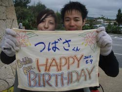 はさぁーーい!久々に海に出かけたあすかでっす(^▽^)今日は東京からあすかの中学の友達が彼女を連れて青の洞窟シュノーケルをしに遊びに来てくれましたっ!!てっちゃんとのりちゃんです☆★2人ともシュノーケルは初めてで、しかも泳ぎに自信がないと言う事でドキドキしていましたが、浅瀬での練習でノリちゃんは慣れ来たのが、笑顔が絶えなくなってきていました!友達のてっちゃんは・・・なとか大丈夫でそうでした(笑)クマノミをみたり、ロクセンスズメダイ、ダツ、ブダイなど沢山群れている魚を見ながら洞窟を目指して行きました☆洞窟の入り口から2人は『後ろは振り向いちゃだめだよ!!』とお楽しみはとっておきながら、洞窟内に沢山いるリュウキュウハタンポの群れに遭遇!!沢山の魚がトルネードしていましたね☆★そして・・・お楽しみの綺麗ナンバー1のスポットへ!!3・2・1の掛け声で2人揃って振り返ると・・そこには綺麗な青い光が!!!2人ともビックリしていました♪♪今日も本当に綺麗な青い光が一面に広がっていました!洞窟の帰りは沢山のお魚にエサをあげながら写真もたくさんとって戻りました。その途中、せいや&あすかからのサプライズプレゼント♪♪今日はてっちゃんの誕生日!!と言う事でお祝いのハンカチをプレゼントしました!本人のてっちゃんものりちゃんもとっても喜んでくれてあたしもすごく嬉しかったです☆★シュノーケルで楽しんでもらえたみたいで、次回は是非ダイビングに挑戦したいと言う事でした☆今日は本当に遊びに来てくれてありがとう★また東京に戻った時はあそぼぉ〜ねぇ〜♪残りの沖縄もたのしんでくださいね☆ |