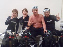 今日は いつも遊びに来てくれる、めぐちゃんとマー君、昨日ダイバーになった ゆみちゃんとバブゥ〜でマエダ岬にファンダイビングです。ジョージは 本日飛行機に乗るので スノーケルです。がんばって青の洞窟へ行きました。時間がよかったのか 人が少なくとっても 青い光りを じっくり見ることが出来ましたね。めぐちゃん 本当に上手くなったね。先生嬉しいよ。まーくんも相変わらず 面白いね。雨が降っていたけど 面白かったです。大きな大きなタコの足を発見かなり格闘しましたが 逃げられました。今日は初日で めぐちゃんもまーくんも リフレッシュできたかな?2本目は ウミウシをチラホラ探しながら のんびりダイブ、相変わらず クマノミなどなど可愛いね。明日の本島ボート楽しんできてくださいね。ゆみちゃんバブゥ〜、ジョージ次回会えるの楽しみにしています。 |