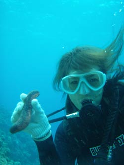 しげちゃんです☆今日の体験ダイビングは飛び入りで、その辺にいたスタッフを捕まえて申し込みをしてくれた、みゆきさんです☆実はライセンスを持っているということで、ちょっと練習をしてFUNダイビングのように潜ってきました♪実際に潜ってみると本当に上手で、全くブランクダイバーではなかったですよ!天気は悪かったですが、洞窟の中は快適でとても青く輝いてましたね!色んな生物も触ったり、見ることができましたね! みゆきさんからコメントも頂きました! 「とても親切なインストラクターの重森さんでした。また一緒にお願いしますね!!」 滞在中にまた会えるのを楽しみにしてますね!お待ちしてまーーーす♪ |