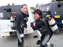 はいはーい!ども、りょーけんでっす。今日はビーチFUN+OW講習最終日にやってきました〜!!今回新たにダイバーになったみっち〜&ゆかちゃん!そして毎度おなじみ、しおぴー&よし君!!この4名で砂辺の海に行ってきました。最初の1本目はハリセンボンを捕まえに行ってきました!探しながら進んでいくとカマスの大群と遭遇しましたね。そしてようやく見つけたハリセンボンをいい感じに追い込みながらもよし君が捕獲失敗・・したように見えたところをしおぴーがナイスフォロー!!みんなで記念撮影してから上がりましたね。2本目は講習ラストということでスキルの確認をやってきました。BC操作や、フィンピポットなど浮力コントロールの練習をやってきました!そして最後の試験でレギュレータリカバリーをばっちり決めてOW合格!!そしてそのまま3本目まで行ってきました!!3本目は捕まえ切れなかったコクテンフグを目指して行ってきました。探している途中で見つけたタコと壮絶な戦いを繰り広げたりした後ようやくコクテンフグを発見!1本目の名誉挽回するかのようによし君がナイスキャッチ!結構でかい奴を捕まえましたね!!その後帰り道ではイワシの大群と遭遇。一瞬暗くなるほどの大群でした!!そして最後に何故か水中でジャケット脱着をして3本目終了!いや〜なんか笑い満点驚き満点で楽しかったですね〜!みっちーとゆかちゃんはまたもぐりに来てください!!しおぴーとよし君は残りのGWを楽しんでくさいね!! |