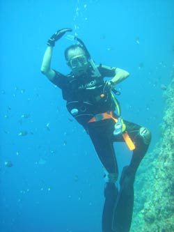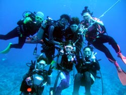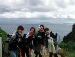 今日は真栄田岬で体験ダイビングしてきました!参加してくれたのは神戸の仲良し4名!ともちゃん・ゆりちゃん・ちほちゃん・えりかちゃんです!最初は緊張してる人やタンクの重さに負けそうな人や寒さに負けそうな人もいましたが、全員で楽しく潜ることができました!! みんなからダイビングの感想を頂きましたよ! えりかちゃん:初ダイビングでしたが、とってもいい思い出ができました☆また、ダイビングやってみたいと思えました♪ありがとうございました またきまーーす☆ ちほちゃん:沖縄の海サイコー!!!初めてのダイビングでしたがお兄さん達のおかげで、とっても楽しむことができました。絶対またきまーーす☆ ゆりちゃん:初めてダイビングをし、シュノーケルで大丈夫だったから大丈夫と思ったけど始めはやっぱり怖かったです。あと、水が冷たくて最初から最後まで震えていました。でもインストラクターの人たちが優しかったので不安も全部吹き飛びました。ありがとうございました。 ともちゃん:初めてのダイビングすっごく楽しかったです。海と魚のキレイさに感動しました。ENJOYできました。またきまーーーす♪ こちらこそありがとうございました!!!また仲良し4人で遊びにきてねーーーーーー☆ |