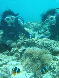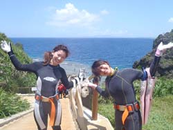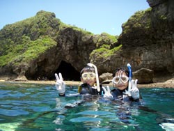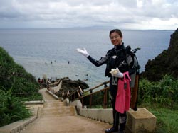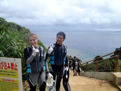今日は真栄田岬でスノーケルとダイビングを楽しんできました!スノーケルは洞窟まで歩き、水面の青さを満喫し 泳ぎながら魚にエサをあげて遊びました☆ダイビングではお2人ともとても上手でかなり広い範囲を泳ぎまわれましたね!クマノミの赤ちゃんもとても可愛かったし、ピンクのクマノミも綺麗でしたね♪ そんなお2人よりコメントを頂きました! ☆沖縄は九州と違って海の色も綺麗だったし魚もたくさん見れたし、案内のしげちゃんがとても素敵な方で楽しい海の1日になりました。 ☆途中、耳抜きが片方できなくて少しパニックになりましたが、重ちゃんのおかげで落ち着いてできました。ちっちゃなクマノミがすごくかわいくて、魚もとても近くで見れて感動しました。別の世界にいるみたいで、とても楽しかったです。ダイビング、最初は不安でしたが重ちゃんが明るくて楽しい人だったので、不安はすぐなくなりました。ありがとうございました。 |