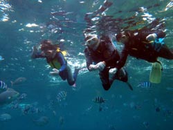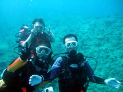 おとん:魚に餌付けできたし、バブルリングの一発芸がすごかったです。体験ダイビングでも十分満足できました。次はライセンス取得してから来たいです。 みつきくん:サンゴの花ばたけがキレイだった。 かつみくん:魚がいっぱい見れてたのしかった。 おかん:途中で挫折しそうだったけど、親切なスタッフのおかげで最後まで頑張れて嬉しいです。 |