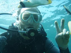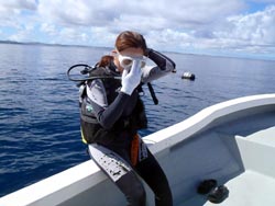 本日2組目のお客様は飛び入り参加で遊びに来てくれたのははんちゃんとたるちゃんのお2人!!はんちゃんは数年前に遊びに来てくれてその時も体験ダイビングで潜ってくれました!!たるちゃんは始めてで、最初はちょっとドキドキしまくって!?(笑)あきらめかけてたけど、はんちゃんの優しいサポートもあり水中を思いっきり楽しんできました!!お2人からコメントを頂いております!! はんちゃん:バブルBOXでのダイビング2回目^−^めっちゃ楽しかったです!!ニモの家族にも会えたよ^−^パンツ履いてた☆是非是非またきます☆ありがとうございました〜^−^^−^ たるちゃん:初ダイビングで最初はめっちゃ恐かったけど、お兄さんのおかげでリラックスできました!!海キレイで魚もいっぱいですっごくすっごく楽しかったです!!!あっという間に時間がすぎちゃいました!!ホントにありがとうございました☆☆またきま〜す!!^−^ 今日は遊びに来てくれてホントにありがとうございます!!また幼馴染の2人で遊びに来てくださいね〜♪ |