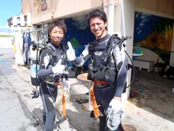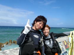コメントありがとうございました!!僕も2人と潜れて楽しかったですよ〜!!今度はユンちゃんもライセンスをとってキヨちゃんとファンできたらいいですね♪また沖縄の海に来たら是非ガイドさせてください♪また沖縄の海で待ってま〜す! |