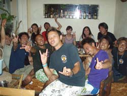 はーい!どーもー!ワンタンでーす!今日は〜揺れる砂辺ッでビーチファンダイビングに行ってきましたぁ!一緒に行ってくれたのは〜森さーん!ふみちゃんでーす!今日は浅瀬の流れ揺れに耐えて、チェーン下ののんびりポイントでネッタイスズメダイや、上を見ているアオギハゼ、取り逃したハリセンボン、小さなウツボ達に三匹だけのグルクマだったり(笑)色んな生物がいましたね!ダイビングが終わって昼の三時からはルービーで乾杯!明るい昼間にお酒・・・最高ですね((笑))。次回はボートでダイビング!お待ちしてまーす! |