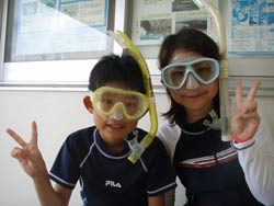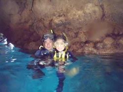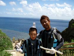 はーい!どーもーワンタンでーす!今日は真栄田岬でビーチ体験ダイビング!一緒に潜ってくれたのは〜タクミくんとお父さんでーす!!まだ潜ったことがないのでドキドキするかなぁ〜っと思っていたら全然余裕でしたね!耳抜きも上手だし!呼吸もバッチグー!すんなり海の中に入れて、無事に洞窟まで行ける事が出来ました!!青い光も小さな魚達もキレイだったでしょー!!帰り道なんかは一人で泳げちゃったね!!魚に囲まれながら餌をあげたり、イソギンチャクの感触もすごかったでしょ!!お2人からコメントをもらっているのでご紹介します! タクミくん「楽しかった!!」 お父さん「スタッフの方がとても親切で、安心して体験することが出来ました」 本当に今日はありがとうございました!また機会があれば遊びに是非来て下さいね! |
