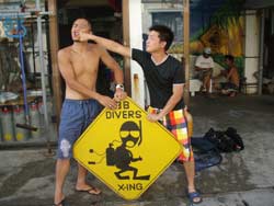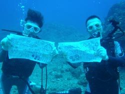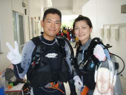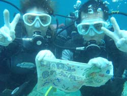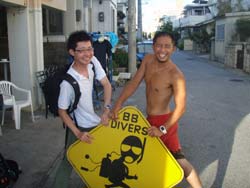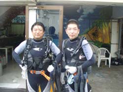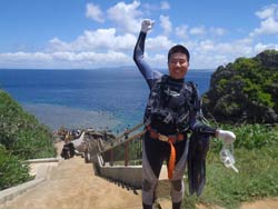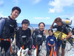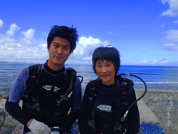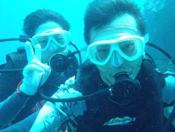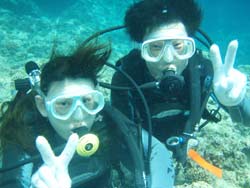 はーい!どーもーワンタンでーす!今日は真栄田岬でビーチ体験ダイビング!!一緒に潜ってくれたのは〜シンイチさん!ユカリさんでーす!わざわざ大阪からお越しいただいたナイスカッポーな2人でーす!今日は透明度も良く!魚もたくさんいて快適でしたね☆緊張する素振りもなく最後は一人で泳げましたね!コメントをもらっているのでご紹介します!! シンイチさん「海がきれいで一生の思い出になるくらいの感動でした!ワンタンもすごく面白く説明してくれて丁寧で優しくサポートして頂きありがとうがざいました!初めての体験でしたがもう一度してみたいと思いました! ゆかりさん「普段の生活を一瞬で忘れました。すごく感動しました!またダイビングをしに来ます!ワンタンさんありがとうございました!」 |
