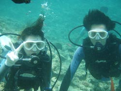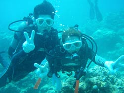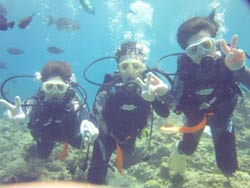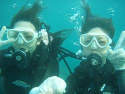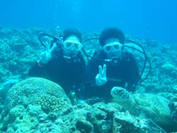 っちわ!!タクです。今日の体験ダイビングは、絶好調の真栄田へ行ってきました〜♪一緒に行ってきたのは、エミコちゃん&ちゃんアツです^0^エミちゃん、練習の時から緊張MAX!!水に入る時も、苦しくなったり、なぜか笑顔になったり、色々ありましたが、最後は自分で泳げるぐらいになってました(驚)ちゃんアツは、緊張してたわりに、かなり上手に泳いでました(笑)いやはや、2人で一緒に泳げて良かった良かった☆★お2人から、感想も頂いてます!! エミちゃん☆初めは苦しくて、どうなるかと思いましたが、慣れてきて最後の方はとても楽しめました。海も魚もキレイで本当にやって良かったし、良い思い出になりました。ありがとうございました! ちゃんアツ☆今日はとても楽しかったです。初めてのダイビングで、しかも泳ぐこと自体久し振りだったので、不安も結構ありましたが、とても分かりやすくご指導して頂きましたので、すぐに慣れて泳げるようになり、良かったです。またダイビングしたいと思います。また沖縄にも遊びに来たいと思いますので、ぜひとも次回もよろしくお願いします。ありがとうございました。 2人が頑張ったからこそ、潜れたんですよ!!!また次回、沖縄バブルボックスでお会いしましょう^0^お待ちしてますよ〜!今日はありがとうございました!!! |