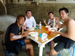 はーい!どーもーワンタンでーす!今日は砂辺でビーチ体験ダイビング!一緒に潜ってくれたのは〜ノブヒロさん!ノブユキさんでーす!暑い暑い群馬県からお越しいただきました!若干緊張はしていましたが、海の中に入った瞬間・・余裕2文字が!さすがでした(笑)ニモも餌に群がってきた魚達もみんな可愛かったですね☆★今日はコメントをもらっているのでご紹介します! ノブユキさん「海ん中は自由でした!」 ノブヒロさん「楽しかった!魚は群がってきて、エサをあげると付いてくるし、泳ぐのを邪魔されてるのかと思うくらいでした((笑))」 本当に今日はありがとうございました!次回は是非ボートでダイビングか、洞窟で潜りましょうね!南の島で待ってまーす☆★ |