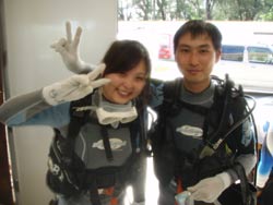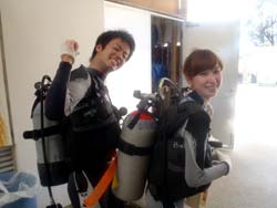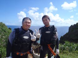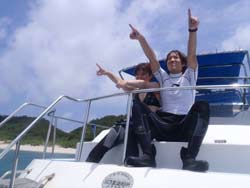 っちわ!!今日は午後から体験ダイビングへ行ってきました☆★今回のお客さんは、東京からお越しのシンちゃん&チエちゃんです♪2人はスノーケルとダイビングを経験済みで、最初から余裕余裕(笑)水中にも楽々と入っていきました^0^洞窟で青の光を味わったあとは、ほぼFUNダイビングのように手を離して泳いだりしました!潜水時間50分!!!あっという間でしたね♪そんな上手な2人から感想も頂きました。 シンちゃん☆最高にキレイな海でとても良い思い出になりました。基本からていねいに教えてもらい、分かりやすく楽しかったです。またお願いしましす。 チエちゃん☆とっても感激しました。タクちゃんもとっても親切で楽しいダイビングができました。又沖縄に来たら是非お願いしたいと思います。 あざーっす!次回はライセンス講習でお会いしましょう(笑)そしてホントのFUNダイビングをしましょう(笑笑)今回はありがとうございました!!! |