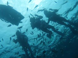 はいはーい!ども、りょーけんでっす。今日はFUNダイビングに行ってきました〜!今回のゲストはBB初参加のはなえさんとあおいさん!この2人とまずはジンベイザメを見に行ってきました〜!ちょっと透明度が悪かったせいでいつどこからジンベイが来るか分からずちょっとドキドキでしたね。フリータイム中は色々と泳ぎ回って様々な角度からジンベイザメを観察してきました!途中でジンベイ3匹がいっせいに突進してきたのにはビックリしました(汗)続いて2本目は真栄田の洞窟へ。こちらもちょっと濁っていましたが、たくさん魚達が集まってきましたね。洞窟の中ではリュウキュウハタンポの稚魚達が作る魚のカーテンがすごくキレイでしたね!今回は1日だけのダイビングでしたが、次回はじっくりと沖縄の海を楽しむ旅行を計画してみてくださいね!! |