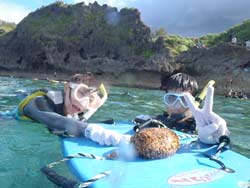 っちわ!!タクです。本日ラストは、ヤッちゃん&さっちゃんで、洞窟スノーケルへ行ってきました♪♪忙しい午前中を過ぎていたこともあり、洞窟の中は、だいぶ空いていました〜☆☆ヤッちゃん、最初から最後まで、はしゃぎまくり(笑)さっちゃんはというと・・・、しっかり浮き輪につかまっていました(笑笑)洞窟もゆっくり見れて、最後はばっちり一発芸も決まりました!!・・・前世はイルカです。つって(笑)さぁお2人から感想も頂いてます! ヤッちゃん☆月並みな言い方ですが、限られた時間を満喫するこができました。楽しい時間は”アっ”っと言う間です。若い人だけではなく、ミドルエイジの人にも是非。一日を回顧できるだけではなく、また楽しみたいと思えるはずです。 さっちゃん☆人が少なくて良かったです。楽しかった。魚の名前を沢山教えてもらいました。 あざーっす!!それに最後の海外のお話、楽しかったです。いつかは行ってやろうと思います!!でもまだまだここにいるつもりなので、また遊びにきてください(笑)今日はありがとうございました!!! |
