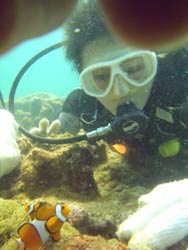 はーい!どーもーワンタンでーす!今日はビーチでファンダイビングをしてきました〜!一緒に行ってくれたのは〜りゅうさん!ちこさんでーす!!今日は行きの車中から色んなイベントがありました((笑))。一本目の水中から三本目まで遊び倒して楽しかったぁ☆★いきなりマスク全没大戦争が勃発したと思ったら、私も気を抜いていた所をバルブを閉められ・・・((笑))。振り向いたらりゅうさんのマスクの中にウミウシが((笑))。ちょっと疲れた時は、砂地でナカユクイ。。のびのびと背伸びをしながら〜かわいいニモにもご挨拶。。相変わらず小さいニモはプリティな顔立ちでしたね☆★そして最後はりゅうさんのバブルリング!なんとスタッフ顔負けの三連続バブルリング!!いや〜あれは本当にすごかったですよー!!休みがあまりないとは思いますが、疲れたらダイビングで癒されにきてくださいね!待ってまーす☆★ |