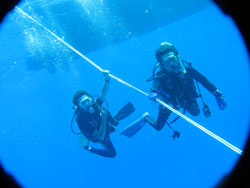 はいはーい!ども、りょーけんでっす。今日はOW講習に行ってきました〜!今回めでたくOWダイバーになったのは兵庫からお越しのゆかちゃんと埼玉からお越しのなべちゃん!最終日ということでケラマまで行ってきました〜。まず1本目は黒島北へ!なんとエントリー直前にイルカの群れが見れるというラッキーな出来事が・・・。水中はやっぱり透明度が良いナイスな海況でしたね!色々と泳ぎ回って生物探しをしてみましたが、残念ながらネムリブカは発見できませんでした・・・(汗)2本目はコーラルガーデンでカメ探し!あちこっち探し回ってようやく発見!けっこう大きめなアオウミガメでしたね。その後も探してみましたが、出てきませんでしたね(泣)3本目はサンドトライアングルへ!ここでもエントリーの直前でタイマイが水面に出てきたので狙ってみました。最初は見つからなかったのでその辺にいるコクテンフグを捕獲して遊んで、またカメを探してみたらやっと出てきた!!水中を優雅に泳ぐタイマイ!一緒に泳ぎながら写真やムービーを撮ってきました〜。次回来た時は最初からFUNダイビングなのでガッツリ遊びまわりましょう!!待ってますよ〜!! |