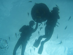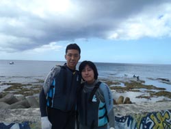 本日は、真栄田へ体験ダイビングへ行ってきました♪今日はめでたい事に、新婚さんが遊びきてくれました!太郎さん&トモちゃんです☆ダイビングは経験有りでしたが、だいぶ久し振りとゆーことで、ゆっくり練習してから海へ行きました〜。最初は緊張してましたが、だんだん慣れてくると笑顔がでてましたね^0^途中ナマコにビビったり、エサあげのときでは軽くテンパったり(笑)色々ありましたが、最後は2人の結婚を祝って、水中お祝いパーティー!!皆でワイワイして、イルカもバブルリングで祝福してくれました(笑)帰り道には「クマノミ」も見れましたね!・・・まぁ〜なにはともあれ、2人で潜れて良かったです!感想も頂いてます。 太郎さん☆キレイな海、かわいい魚、普段啓化県できないことや、見えないものを見れて、とても良い思い出になりました。ダイビングは二回目でしたが、楽しかったです。課題は呼吸!!何度も水面に上がって迷惑jかけちゃいました・・・。次回は、パーフェクトで青の洞窟制覇!!サプライズプレゼントもあり、めっちゃ嬉しかったです。また来年来たいです。 トモちゃん☆グアム、サイパンの海よりも透明で魚が多いことに驚きました。長い間泳げたのでとても充実し満足できて、ボードを通してお話できたのが初体験で安心して安心感もありとても楽しむことがでできました。インストラクターの方がお話し上手で、水に入る前からとても楽しむことができました。新婚旅行のサプライズもあり、一生の思い出になりました。また再訪したいです。ニモが見れたのが嬉しかったです。 あざーっす!エサあげ、すごいことになってましたが、ばっちりムービー撮っておきました(笑)一人は夢中で気付いてませんでしたが^0^また次回ダイビングするときは、今日よりだいぶ楽だと思うので、機会があればまた来て下さい!今日はありがとうございました!!! |