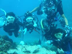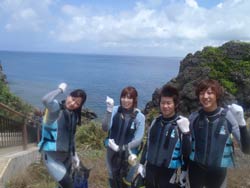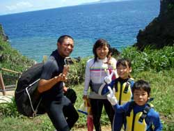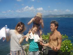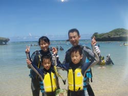 はーい!どーもワンタンでーす!今日は12時から真栄田岬で洞窟スノーケルに行ってきました!一緒に遊んでくれたのは〜俊樹さん!宏幸さん!育江さん!鈴菜さんでーす!わざわざ茨城県からきてくれました!!三人はわくわくしながら・・若干一名鈴菜さんはドキドキしていましたが、碧い光を見ながら泳いでいるとだんだん慣れて行きましたね!!そしてエサをあげたり、おもしろいおしゃべりもしました!「夜の仕返し」はあの時いたメンバーしかわかりませんが、俺は大爆笑でした(笑)そんな四人からコメントをもらっているのでご紹介します! 俊樹さん//すごく楽しかったです!また来年このメンツできます! 宏幸さん//初めての体験でとても楽しかったです!またやりにきまーす! 育江さん//来年もこのメンバーで絶対来たいと思います!お兄さんありがとう☆ 鈴菜さん//最初どうなるかなと思ったけど慣れたらすごく楽しくキレイでよかったです!! |