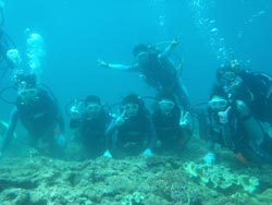 っちわ!タクです。台風過ぎて今日は、晴天!!なので、今日は真栄田へ体験ダイビングに行ってきました〜(笑)一緒に行ってきたのは、出身はバラバラだけど、予備校の友達同士で来てくれてた男6人の男祭りです☆★皆かなり緊張してましたが、案外すんなりといけちゃいましたね(笑)エサをあげたり、写真撮ったり、自分で泳いでみたりと、めちゃくちゃ楽しそうでした^0^そんな皆から、コメントも頂いてます♪♪ ノブ☆沖縄の海がとてもキレイで、たくさんの魚が目の前を泳いでいたので最高でした。またきたいです。 タマテツ☆クマノミ可愛かったです。またダイビングのために沖縄に来たいと思いました。 モリケン☆カラフルな色の魚やクマノミなどのような魚が見れたりして楽しかったです。海もキレイで、また来たいと思いました。 タンタカタン☆洞窟は恐かったけど、魚とも触れ合えてとても楽しかった! 岩手のイダ夫☆前に来た時はイカと魚一匹しか見れなかったけど、今回はたくさん見れてHAPPYです。やっぱり夏で天気の良い日がよいですね。 ペッシー☆魚いっぱい見れて楽しかった!! あざーっす!!皆上手だったので、ライセンスもちょちょいっと取れるかもしれませんね^0^また次回、沖縄で待ってますよー!今日はありがとうございました!!! |