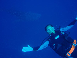 今日はジンベエ+1ビーチで潜ってきました!一緒に潜って頂いたのは、初BBのやじさん♪台風前の滑り込みセーフで、ジンベエも無事出航!網の中の人数も少なく、透明度もまずまずで快適でした!3匹もいるジンベエに目を奪われながらもカメラ片手に激写しまくってきました☆人生初の大物との激突も果たして2本目は砂辺のビーチへ!北谷で潜るのは初だったやじさん☆マンツーマンだったのでじっくり生物観察できましたね!透明なエビやサンゴの上のスズメダイの子供達、水玉サンゴやソフトコーラルのお花畑も♪次回は是非、本島沖のボートにも行ってみましょう!またお待ちしてますね!いつかは奥様とお子さんも☆ |