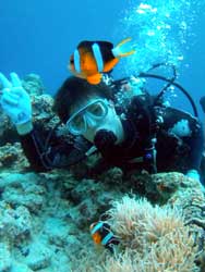 はいはーい!ども、りょーけんでっす。今日はFUNダイビングに行ってきました〜!今回のメンバーはバイクで沖縄を旅しようとしているあやちゃん!マンツーで砂辺の海に遊びに行って来ました。最初潜るとき潜行速度が速かったためサイナスが痛かったようですが、一度浮上してゆっくりと潜行したら大丈夫でしたね。ニモを見に行ったり、オラウータンクラブやニセアカホシカクレエビをじっくりと観賞したりしました〜!お花畑の上に上がったときソフトコーラルにタッチした時のおどろいた顔は・・・(笑)その後ゆっくりと泳いでいたら私の両足が同時に攣るなんていう事態が・・・(泣)動けないからバブルリングで遊んだりしました。今回は1本だけの予定でしたが、次回来たときはゆっくりと3本潜りましょうね〜!! |