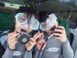 はいさ〜〜い、今日の天気は抜群の台風日和でございます!!そんな中絶対沖縄に来たら潜らにゃいかんという女の子2人が来てくれました☆その気合に乾杯!!チーン♪なので自分(せーや)とわんたんさんと本部ゴリラチョップに向かいました。今日来てくれたのは、東京都からお越しのSさんとMさんの元気のいい二人です!風の強い中説明もしっかり聞いてくれて海では2人ともほんとに上手でした。クマノミ見たり、変なポーズとったりと水中でいろいろ遊びましたね^^2人からも今回のダイビングの感想を頂いたので載せていきまーし! Sさん「初めてのダイビングだったのですが、海もとてもキレイですごく楽しかったです。魚達もめっちゃ近くで最高でした!!また沖縄に来たら絶対ダイビングやりたいですね。今日はありがとうございました!!」 Mさん「初めてのダイビングすごく楽しかったです!!ニモ??近くで見れてカンドーしました。説明も分かりやすくてよかったです。」 こんな強い風の中でも海はキレイでしたね☆次は天気がめちゃいい日に遊びにきてください!!待ってまーす♪ |