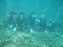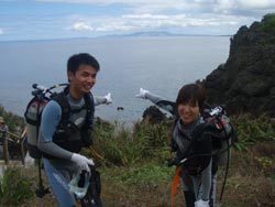 本日11時から洞窟スノーケルへ行ってきた、タクです☆一緒に行ってきたのは、フクダさんカップルと、名字が一緒!!のクロダさん率いる3名!!!この5人と一緒に、洞窟へ行ってきました〜♪さぁーさっそく陸での練習から珍プレー続出でした(笑)色々ありましたが、準備を整えてレッツラゴ―!最初は歩いて行って、洞窟の中から出発。洞窟の中は人で一杯でしたが、最後はエンターテイナー黒田の「じらし」を入れて、ばっちり青が見れましたね(笑)帰り道では何人かちょっと酔っちゃいましたが、バブルリングで盛り上げました!!!感想も頂いてますので、載せていきまーす!! ナオミさん☆青の洞窟はすごくキレイで、日頃のイヤなこと忘れました。魚と一緒に泳げるって初めて知りました。沖縄すげぇ!思い出いいっぱい!また来たいです! マサミさん☆初スノーケル!感動!!青の洞窟、マジ青いしー!!ヤバス!!バブルリングがステキで琢ちゃん好きになりそうでした!沖縄サイコー。ありがとう!! チハルさん☆青の洞窟がすごく感動しました。海の中もキレかったです! ジュンさん☆想像以上にキレイでした。青の洞窟はサイコーです。ニモにも会えてよかった。また来年来たいと思います。ありがとうございました! ユカさん☆とっても綺麗でした〜!魚が近かったのにはビックリしました!!ありがとうございました! あざーっす!次回はダイビングで洞窟へ行ってみましょう♪ケラマへ行って、カメも有りですね^0^いつでも待ってます!今日はありがとうございました!!! |