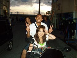 っちわ!タクです。台風なんてお構いなしで、今日は砂辺で体験ダイビングへ行ってきました〜!今日のお客さんは神奈川県からお越しの竹内さん一家♪練習では、お母さんが緊張しまくりでしたが、水に入るとまぁ〜〜不思議って思うほど人が変わってスイスイ泳いでました(笑)それに小学生のミサちゃんは一番度胸がありました(驚)その他の皆も元気に泳いで、ヒトデをマスクに引っかけたり、オシャレなヘアバンドも拾ったりして(笑)、色々楽しかったですね!皆から感想も頂いてます! お父さん☆大いに楽しんだ!!魚がいっぱい、感激です。23、8、3 たぶん台風の前日。 マオちゃん☆すごい楽しかった!!沖縄の海めちゃくちゃキレイだった。また来たい。 ミサちゃん☆見たことのない魚がたくさん見れて良かったです。ダイビングは難しかったけど、とても楽しかった。 お母さん☆とても楽しい経験ができました。キレイな海に「感激」です。親切丁寧にご指導頂き、ありがとうざいました! ヒロキ君☆初めてやったけど、とても楽しくできました。魚をあんなに見れたのは初めてだったので良かったです。またやりたいです。 あざーーっす!なんだかんだ皆で潜れて良かったですね☆★また次回、洞窟リベンジしましょうね〜〜!お待ちしてまーす。今日はありがとうございました!!! |