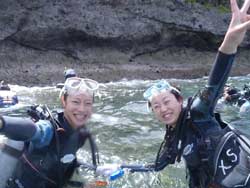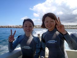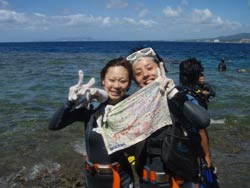 はーい!!どーもー!ワンタンでーーーす!!今日は砂辺でビーチ体験ダイビング!!一緒に遊んでくれたのは~茨城から来てくれた山下さんと山崎さんでーす☆★山崎さんはドキドキすることなく練習も楽しみながら潜ることができましたね!山下さんは逆にド緊張しながら(笑)。でも無事に潜ることができましたね!!ニモも餌に寄ってきた魚もすごくかわいかったでしょー!!次はライセンスかボートダイブでもしてみましょうね~!待ってまーっす♪♪ 山崎さん「ニモにもサンゴも触れることができてすごく楽しかったです!渡部さんの1発芸も最高でした!」 山下さん「最初は緊張していたけど渡部さんのおかげで楽しくできました。難しいことがあっても丁寧に教えてくれてありがとうございます!」 |
