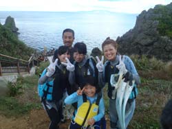 はいさ~~い、せーやです!!真栄田岬に今日も行ってきましたよー。今日青の洞窟に一緒にシュノーケリングをしてくれたのは、最近多い同じ埼玉県からお越しの石井さんファミリー4人家族です☆秀造くんと優治くんは元気な小学校6年生と4年生!最初は付けたことのない水中マスクに戸惑いながらも付けてバッチリ呼吸していましたね。お母さんは最初不安がっていましたが洞窟の奥に着いて海に入った時は一番喜んでいて楽しんでいました!!青の洞窟は今日は人が少なくきれいなとこにすぐに到着してみんなで記念撮影しましたね☆そんなみんなからもコメントを頂いたので載せていきまーす。 石井さんファミリー・初めての経験で少し不安でしたが、きれいな海の感動と楽しさいっぱいでした。とてもきれいだった。 |