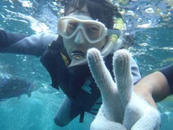 はーい、どーもせーやです!!今日はほんっとに天気がいい日でしたよ~~、そんな中遊びに来てくれたのは、同じ埼玉県からお越しのお母さんとその子供の2人組み!今回2人は初ダイビングで、ちょっと緊張気味でした。^^説明の後もちょっと怖くなってきたと不安いっぱいで海のほうに!!でも足の着くところでもう一回練習して少しづつ慣れていくとだんだん余裕が出てきましたね♪途中たまに怖くなりつつも洞窟まで頑張りました!お子さんの方は余裕が出てましたね^^青の洞窟は神秘的で2人もそれに釘づけでした☆そんな2人からもコメントを頂いたので載せていきまーす!! ☆初めてダイビングをやった時少し怖かったです(><) でもチョウチョウウオやクマノミなどがたくさんいました!!海の中はとても綺麗でした♪とても楽しかったです!!エサやりもできて嬉しいです☆ ☆初めちょっとパニックになってしまいましたが慣れてみるととても楽しくて気持ちが良かったです♪優しく指導してくださってありがとうございました!! |