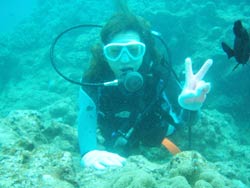 はいはーい!ども、りょーけんでっす。今日は体験ダイビングに行ってきました~!今回のゲストは静岡県からお越しのアキさん&エリさん!!この2人と砂辺の海に遊びに行ってきました~!2人とも経験ありでしたが、最初はちょっと緊張気味でしたね。ゆっくりと水面で練習をして沈んでいくと魚が四方八方から寄ってきてました!魚達に餌付けをして遊んだ後はニモに会いに行ったりやわらかいサンゴのお花畑をゆっくりと泳いで見たりもしました。2人ともかなり上手だったので、途中から手を離して泳いで見たりもしました!今回2人からコメントを頂いているので掲載します! アキさん☆親切なスタッフさんたちに迎えられ楽しくダイビングさせていただきました。ありがとうございました。 エリさん☆親切なリョウケンさんのアドバイスで海の楽しさが分かりました。恐怖感を取り去ってくださってどうもありがとうございました。次に沖縄に来るときも絶対!ここに決めます!! 以上です!!また次回沖縄に来た時一緒に潜るのを楽しみにしてますよ~!! |
