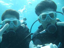 っちわ!タクです。11時からは、洞窟体験ダイビングに行ってきました~!海がワッショイでしたが、男祭りで元気よく行ってきました^0^途中、ちょっと緊張してリタイアした人もいましたが、後の皆でたっぷり泳ぎました。とても上手だったので、ライセンスにも挑戦してみては??と思うほどでした^0^次回また皆で泳ぎにきてくださいね!最後に皆の感想を載せていきます。 オノちゃん☆初めはけっこう怖くて、潜れるか心配だったけど、インストラクターの人がノリも良くてやさいく丁寧に教えていただいたので、安心して楽しく潜れました。また来たいと思いました。 ヨウ☆最高のダイビングになりました。最初は怖くてダメかと思ったけど練習したらすぐ慣れて、魚の餌付けもできたし!また来ます。 モテ☆いい経験ができました。魚も間近で見れてとてもキレイでした。良かったです。しの☆楽しい経験ができました。教えてくれた人も親切でよかったです。とてもキレイでした。 |