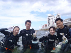 はーい!どーもワンタンでーす!今日11時〜体験ダイビングをしてくれたのが〜シホさん!カズマサさん!ユウタさん!アサコさんでーす!皆さん初めてだったようですが・・男性チームは余裕そう!女性チームは・・・ドキドキMAXそう((笑))。でもでもちゃんと練習したおかげで無事にみんな潜ることができました!写真を撮ったり、ムービーだったり、ニモは可愛くて最高でしたね!!上手になった所で終了でしたが・・次回は洞窟に行ってみましょうね☆★ |