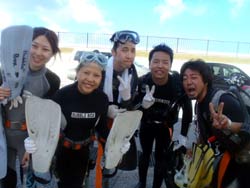 はいさ〜い、せーやです!!今日はやっと我等が砂辺をやっと使えるようになり砂辺で泳いできましたよ!一緒に泳いでくれたのは、関東からお越しの4人組みのチーム「おいなり」で〜〜す☆チーム名は聞きましたが、投稿できないので載せませーん^^みんなほぼシュノーケル初めてでちょっと波があることにドキドキしてましたね。でも途中お魚にエサをあげたりしてるうちにみんなあっちこっちすいすい泳いでました!最後はニモ見て一発芸でフィニッシュです。そんな4人から今日のシュノーケルの感想をいただきました! 菜名子さん「初めは泳げないから怖かったんですけど泳げるようになってよかったです。魚が近くてかじられそうになったけど、かじられなくてよかったです。ダイバーさんが優しくてよかったです。でも変態でした。」 美咲さん「みんな無事に帰ってくることができてよかったです^^We are おいなり forever☆☆砂辺??最高!!せーやさん最高!!沖縄最高!!青いお魚ちゃんにお願いしたことが叶うと信じて・・・栃木でシュノーケリングするぞ〜〜☆」 聡花さん「魚いっぱい見れてすごいよかったです!!エサもあげられてめちゃめちゃかわいかったです^^お兄さんも丁寧に教えてくれたので怖くなかったし秋休みのいい思い出になりました!!」 未来さん「楽しかったです。ダイバーさんが変態でした。みんな変態でした。くもり止めでもう心がくもらないようにかけてもらいました。」 ※みんなに変態呼ばわりされてますが、水中でしか変態になってません!!笑 |