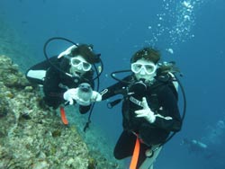 っちわ!タクです。今日は砂辺祭りです♪続いて一緒に体験ダイビングに行ってきたのは、マキちゃん&ナオちゃん。初めてダイビングで緊張?してるのかな??とゆーくらい冷静で落ち着いている2人でしたが、案の定海の中でも余裕でした(笑)ナオちゃんは魚に夢中になりすぎて、時々自分の世界に入ってましたが・・・(爆)エサあげのときは、魚しか写ってなかったですが、バッチリ納めておきました(笑)2人から感想をもらってまーす。 マキちゃん&ナオちゃん☆魚と遊んで楽しかったです!!! 2人とも全然上手だったので、ライセンスとかにも挑戦してみてね〜〜。あの冷静さならいける!!(笑)待ってまーす♪♪ |
