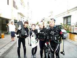 はーい!どーもーワンタンでーす!今日は昨日ダイバーになったナシエちゃんとモコちゃんでさっそくファンダイビングに行ってきましたぁ〜☆★ポイントは・・・はい!2人はもうお馴染のゴリラチョップ((笑))。今日が一番風が強かったですが...頑張って潜ってきましたよー((笑))。アイドルごっこやメルヘンごっこ((笑))水中肩車に餌付け遊び!!本当に楽しかったし、ナシエちゃんもモコちゃんも本当に上手になってワンタンも嬉しいです!!今日は一回しか潜れませんでしたが・・次回はケラマにも砂辺にもリベンジしてみてくださいね☆★またいつでも南の島でお待ちしております♪♪ |