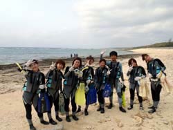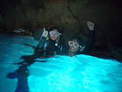 はーい!どーもーワンタンでーす!今日は午後からビーチ体験ダイビング!一緒に潜ってくれたのは〜大阪からお越しのたかささんチームでーす!初めてのダイビングだったので最初はちょっと緊張気味でしたが・・水面で練習すればするほどだんだん上手になってきて、楽しみもできましたね★しっかり練習したので海の中はすんなり入れて〜ナマコをもったり、ソフトコーラルを触ったり、魚に餌をあげて囲まれて見たり(笑)。スノーケルでは素潜り特訓!!徐々に潜れるようになり気付いたら一時間くらいたってました(笑)。海は楽しいから時間があっという間でしょ☆★次回は必ず洞窟に行って見ようね♪♪ |
