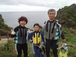 はいさ〜〜い、せーやです!!今日も遊びに行ってきました真栄田岬♪ちょっと海況的にちょっとぱっしゃってましたが、みんな頑張って青の洞窟行ってきました!今日きてくれたのはお母さんと元気な子供の若葉ファミリー3人組☆行きは一応陸から行ってアドベンチャーしてきました!そのまま一気に青の洞窟でメインのきれいな所を見てきました。海君はとってもびっくりして大きい声を上げて驚いていたね!帰りは海から行って、いろいろな魚を見ましたね。ちゅら海水族館のあとだったから、魚も覚えてたのがいたかな??みんな泳ぎが上手でした!そんなみんなからコメントもいただけました。 『急な予約で遅れてしまいましたが快く教えていただき本当にありがとうございました。』 『お兄さんがとてもいい人でした。また行きたいです。今の気分あげぽよ〜!!』 『お兄さんかっこいいね〜!!あげぽよ〜!!』 |