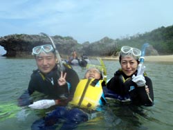 はいさ〜〜い、せーやです!!今日はいい天気ですよ〜〜感謝ですね。そんな一日の始まりにシュノーケルをしにきてくれました。東京都からお越しの木村さん夫婦☆お2人はよくシュノーケルをやられるみたいで海外でも最近泳いで来たみたいです!なのでとっても上手でがんがん泳いでましたよ〜〜。今日は砂辺で泳いできたのでソフトコーラルを見て本物のニモにも会ってきましたね♪お2人からもコメントをいただきました。 佑介さん「すばらしいきれいな沖縄の海に感謝します。学生時代(ヨットをやっていて時に素潜りもしていました)のいろんな事を思い出しました)又、来たいと思います。息子夫婦も又来ると思います。よろしく!!」 幸子さん「どうもありがとうございました。クマノミも見れました。ロクセンスズメダイも寄ってきて手から食べてくれました。とても楽しかったです。ヤガラも見れたし、スズメダイのブルーがとてもキレイでした。本当にありがとうございました。」 |