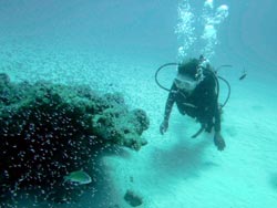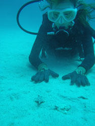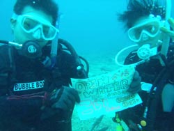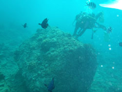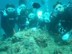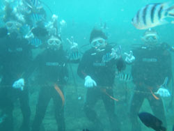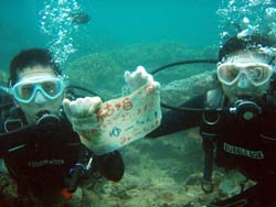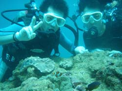 うぃ〜っす!タクです。本日、バブル産のダイバーが誕生しました!!東さんこと東MAXです^0^初日は緊張MAXでなかなか進みませんでしたが・・・、初日のレギュレータークリアから始まり、二日目のゴリチョでのマスク脱着!!更には最終日のコンパスやら学科のテスト(汗)かなりハードな三日間でしたね〜。でもでも、くじけない気持ちと強いハートは人一倍でした!!最終日はすごく上手になって、大好きなウミウシも発見することができましたね♪♪ホントにすごく頑張っていました!そして立派なダイバーになれました!本当におめでとう☆★これからもじゃんじゃん潜ってください!! コメントもいただきました! 東MAX「最初は水の中で息するのも恐かったけどきれいな魚を見た瞬間忘れてしまいました(^^)♪最後まで教えてくれて(遅い時間まで)本当にありがとうございました!!」 |