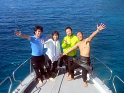 っちわ!タクです。今日は俺の姉さんと、姉さんの職場の方達が石川県から遊びに来てくれました♪申し込み書を書いてる時は笑顔で盛り上がってましたが、練習を始めると180℃ひっくり返ってみーんなド緊張(笑)どうなることかと思いましたが、全員無事に海に入れました☆コウさんとナルさん、一番ノリ気だったお2人が一番緊張してましたよ(笑)ニモも見れたし、イルカ?も見れたし、良かったですね〜。最後は、恥ずかしかったけど久々に帰ってきた姉さんにハンカチをプレゼントしました。ハンカチ作ってくれた「せいや、ゆうき、あすかさん、ともさん?」あざーっした!!!最後に感想を載せます。 成樹さん・最初はすごく不安で緊張して、どうなるのかと思ったけどスタッフさんのとても丁寧で親切な対応のおかげでほんと楽しくダイビングできました。ありがとうございました。また絶対来ます。 真以さん・いい経験が出来ました!!最初、不安でノリ気じゃなかったんですけど…ダイビングして良かったです☆魚もサンゴもすごく近くで見て触って感動!!インストラクターの方もしっかり教えてくれて、不安だったけど、ずっと一緒にいてくれて安心しました☆サプライズも感動で泣きそうでした(笑)ありがとうございました!!ニモとイルカかわいかったぁーーー。 幸誉さん・石川県金沢市から来ました。本日初めてのダイビング!!最初はコワかったー。でも行けてよかったー。多分、インストラクターの方々の優しさにホッとして…。最高の一日になりました。Thank