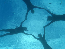 うぃ〜す!ハタチになったタクです。今日はゴリチョで体験ダイビングにいってきました!最近、俺の1つ上の姉が来て、今日は一番上の姉がダイビングに来ました!なんだか家族率が高いです(笑)彼氏さんのツヨシさんも一緒にダイビングに挑戦して、めっちゃ興奮してました^0^でも練習になると緊張してソワソワ。海でも最初は色々大変で・・・。サイナスの事は、あくまでもダイバーの前ではネタにしないように(笑)泳ぎは問題なく、サイナスも問題なく、ウミヘビにはビビッてたけど楽しめて何より!最後に感想載せま〜〜す。 DJツヨシ☆初めての体験でしたが最高でした。また沖縄に来たら必ずやりたい!!インストラクターも丁寧で親切でした。ありがとうございました。 姉さん☆初めは本当に潜れるのか、息がちゃんと出来るのかすごい緊張して、タクの腕を強くにぎってました(笑)海の中の景色に感動していたら、気づくと自然と息もできていて、タクのエスコートも上手で安心して楽しむ事ができました。普段はながめているだけの海でしたが、海の中の世界が見れてもっと海が好きになった!!ありがとうねーー!!! |