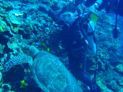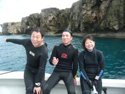 うぃす!タクです。今日はひっさしぶりに真栄田で体験ダイビングに行ってきました〜^0^天気も晴れて、海も穏やか!!しかも透明度も20Mオーバー!!!きもてぃ〜〜〜♪♪一緒に洞窟まで冒険に行ったのは、タクヤ君&アッスーです。2人は初めてでしたが、呼吸も耳抜きもスイスイ(驚)海の中でもスイスイ(笑)洞窟も空いていてキレイでした!!最後はシンキングタイムで年齢暴露☆そーーなんです!明日で俺、ハタチです☆★十代最後のお客さんです!!ありがと〜〜〜♪♪感想も載せまーす。 アッスー☆ダイビングに初挑戦だったので、とても不安だったのですが、明るくわかりやすい説明をしてくださったインストラクタータクちゃんのおかげで、とても楽しく終えることができました。天候にも恵まれて、すっごくキレイな海の世界をみることができて、沖縄にきてよかったと心から思いまし。た私の思い出の1ページに鮮明に残るものとなりました。ありがとうございました。 タクヤ君☆初めて沖縄に来てダイビングに挑戦しました。インストラクターのタクちゃんも、わかりやすく教えてくれて良かった。また沖縄に来て、ダイビングしたいなと思いました。本当に沖縄の海は最高でした。 |