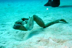 はいはーい!ども、りょーけんでっす。今日はFUNダイビングに行ってきました〜!今回もまたゆかちゃんとマンツーで砂辺の海に潜りに行ってきました〜。まず1本目は左下の砂地で生物探しに行ってきました!えさを探しているヨメヒメジをじっくり観察してみたり、砂地で丸まっているイソギンチャクを触ってみたりしましたね。続いての2本目は右下の砂地へ!ここではオトメハゼやヒメダテハゼをじっくり観賞。一緒に住んでるテッポウエビも観察できましたね。途中で水草に寄り添う形で擬態しているツマジロオコゼの子供も発見できました!ゆかちゃんは本日最終日。次回はいつ着てくれるのかな?楽しみにして待ってますよ〜!! |